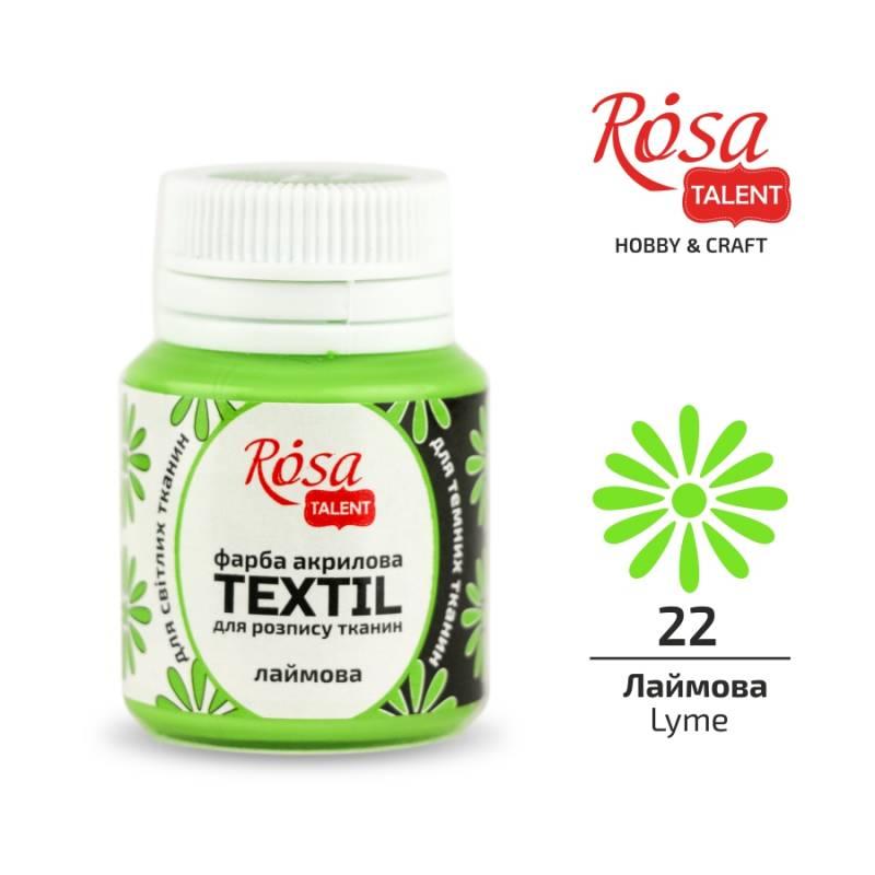 Фарба акрилова для тканин, Лаймова (22), 20 мл, ROSA TALENT